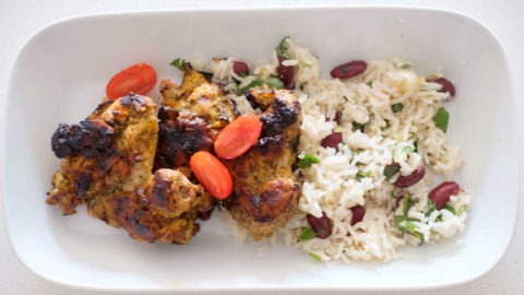 Grilled Zesty Cilantro Chicken with Rice and Beans